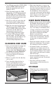 5. Wipe down the plates to remove any leftover food. The cooking plates, drip tray and cleaning/scraping tool can be cleaned by hand or on the top shelf of the dishwasher. The housing base, cover and control panel can be wiped clean with a soft, dry cloth. For tough stains, dampen cloth. Never use an abrasive cleaner or harsh pad. 3. The LED light around the UPPER SEAR and/or LOWER SEAR button(s) will illuminate red indicating the unit is heating to 500˚F. 4.