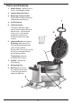 Piezas y características 1. Placas para hacer wafles/gofres – Cuecen wafles/gofres belgas extragruesos de 1 pulgada (2.5 cm). 2. Placas para tortilla de huevo y panqueque 3. Perillas de control de temperatura independientes Permiten ajustar la temperatura según la mezcla o sus preferencias. 4. Botón de encendido/apagado 5. Indicadores luminosos 7 Luces verdes independientes (una para cada lado); se encienden cuando la unidad alcanza a temperatura adecuada, y otra vez al final de la cocción.