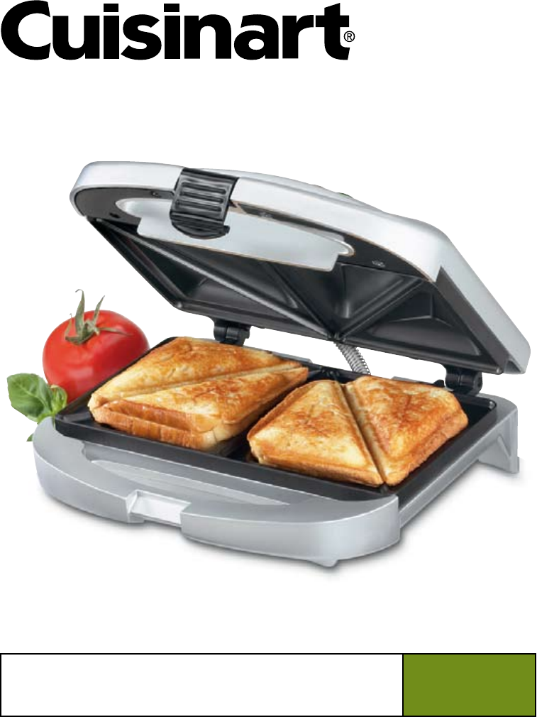 TIPS AND HINTS FOR USING YOUR CUISINART® SANDWICH GRILL: Preheat Cuisinart® Sandwich Grill completely before using. For “quick to assemble” sandwiches and pastries, preheat the Sandwich Grill while preparing the food to be grilled. Close the lid of the Sandwich Grill while preheating. When preparing more than one batch of sandwiches, keep lid closed to maintain even heat. You may use a variety of breads with excellent results in the Cuisinart® Sandwich Grill .