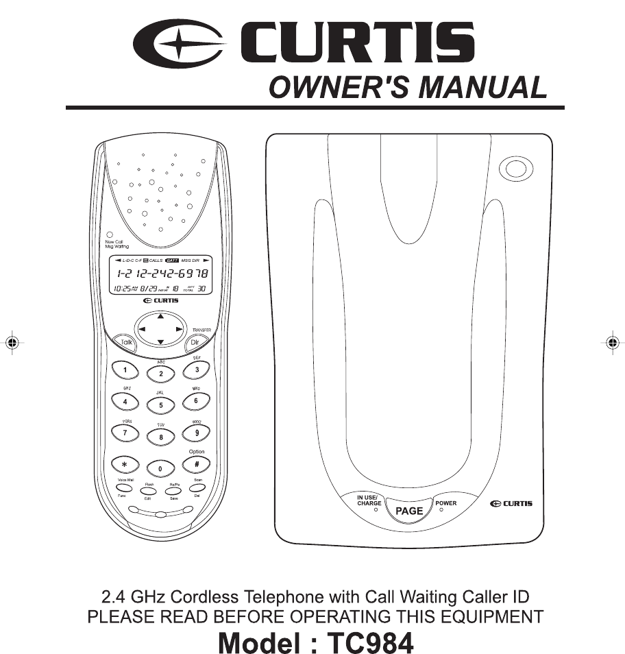 Caller ID System Operation Keypad Function 0 MSG Waiting Delete - Clears current message waiting indication. * Area Code - Allows the programming of a home Area Code where 7-digit dialing is used for ease of callback. (Do not program if you use 10-digit dialing to call numbers in your area). # Register - Initiates the registration of Handset(s) to the Base Unit. NOTE: At any time during options programming you can quit and the settings that you have changed will be saved.
