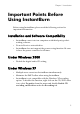 Chapter 1: Introduction Important Points Before Using InstantBurn Before using InstantBurn, please read the following section for important information. Installation and Software Compatibility • InstantBurn cannot exist on computers with third-party packet- writing software. • Do not allocate a network drive. • InstantBurn does not support the power saving function. Be sure to have the power connected at all times. Under Windows 2000 • Disable the digital audio CD setting.