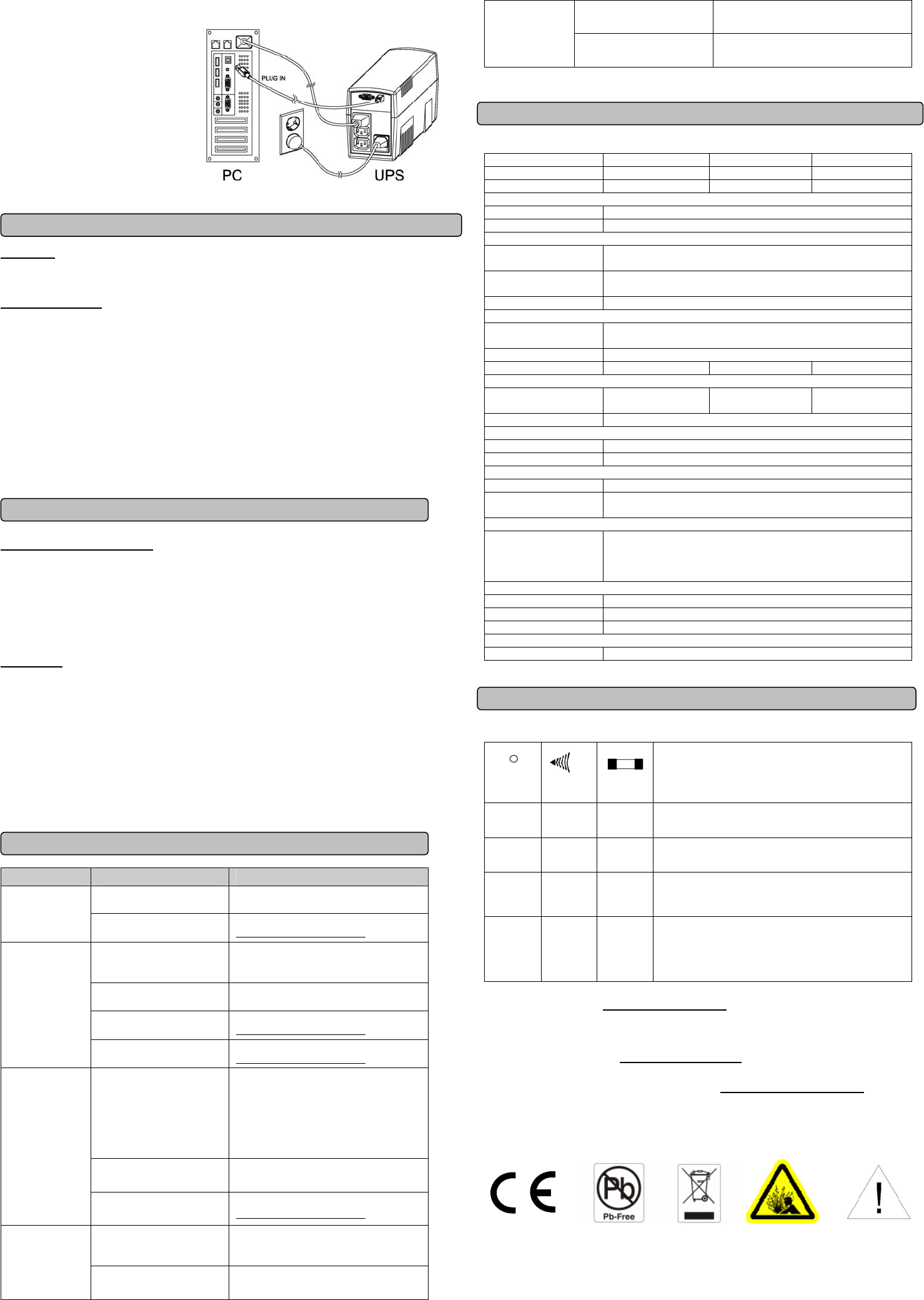 3. Unplug the UPS from power inlet if the UPS will not operate for long period of time.