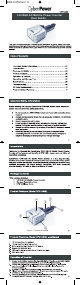004-5-075/back K Output Power 140 Watts Continuous Output Voltage 120 Volts +/- 10% Output Frequency 60 Hz Output Waveform Simulated Sine Wave Input Voltage 10.8 to 15.8 volts Low Voltage Shutdown 10.5 volt Problem Possible Cause No AC output power (Power indicator is not illuminated) Short/Long Beep Suggested Solutions Poor contact with lighter socket Ensure the inverter adapter is securely plugged into vehicle s lighter socket. Replace the lighter socket if necessary.