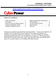 CPS525SL / CPS725SL Guaranteed Uninterruptible Power System www.cyberpowersystems.com/FAQs.htm TABLE OF CONTENTS Battery Replacement Instructions.....7 LED Indicators………………………..8 Trouble Shooting Guide…………… .9 Specifications……………………….10 Warranty... ... ... ... ... ... ... ... ... ... .11 Safety Instructions....... ... .. ... ... ... ...1 Description……………………………..1 Determining Power Requirements…..2 Hardware Installation Guide………….2 Software Installation Guide…………..