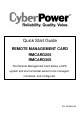 INSTALLATION GUIDE Step 1. Hardware Installation RMCARD205 RMCARD305 1. Remove the two retaining screws of the expansion port cover, and then remove the cover. 2. Install the CyberPower Remote Management Card into the expansion port. 3. Re-install and tighten the retaining screws. 4. Connect the Ethernet cable to the Ethernet connector of the CyberPower Remote Management Card. 5. (Optional) To connect with the environmental sensor, use a RJ45 Ethernet cable.