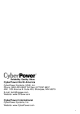 CyberPower North America CyberPower Systems (USA), Inc. Phone: (952)-403-9500 Toll-free: (877)297-6937 4241 12th Avenue E. Suite 400, Shakopee, MN 55379 E-mail: tech@cpsww.com Website: www.CPSww.com CyberPower International CyberPower Systems, Inc. Website: www.CyberPower.