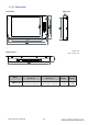 < 3.2 > Options : Touchscreen & driver RMP-161-X617 USB Touchscreen Specification Model TRB TCB e-Resistive e-Capacitive Technology 5-Wire Resistive Capacitive Touch Point Single Single Stylus or Finger Finger ≤ 50g / Stylus=R0.8 ≤ 50g Method Activation Force Durability 10 million touches Response Time 300 millûn touches 15 ms 20 ms 80% ± 3% 92% ±2% 3H 9H Haze 8% ± 3% 7% Glass 2.2 ±0.2 mm 2.