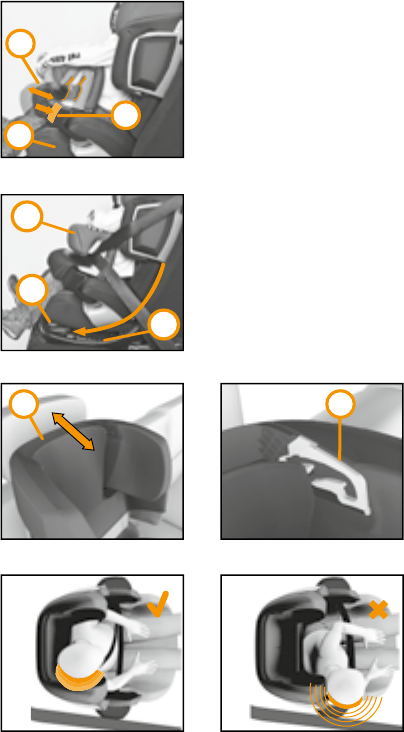 – Ha a gyermek elalszik, húzza meg a fogantyút (v) és az ülés automatikusan