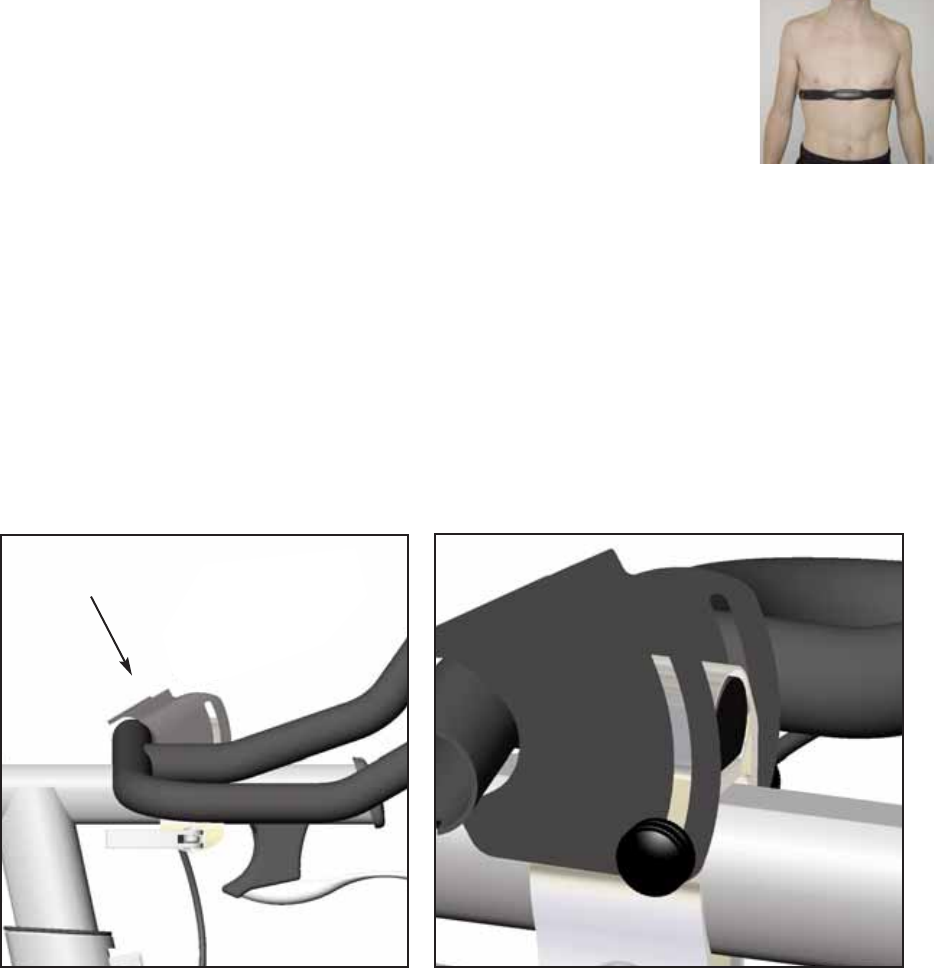 sotto i pettorali. Assicurarsi che gli elettrodi posti sulla fascia nella zona di contatto con la pelle siano leggermente umidi,
