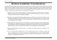 Section 2 - Installation Wireless Installation Considerations The D-Link AirPremier® N wireless access point lets you access your network using a wireless connection from virtually anywhere within the operating range of your wireless network. Keep in mind, however, that the number, thickness and location of walls, ceilings, or other objects that the wireless signals must pass through, may limit the range. Typical = \ , \ = = : $ ] _ \` = \ ,