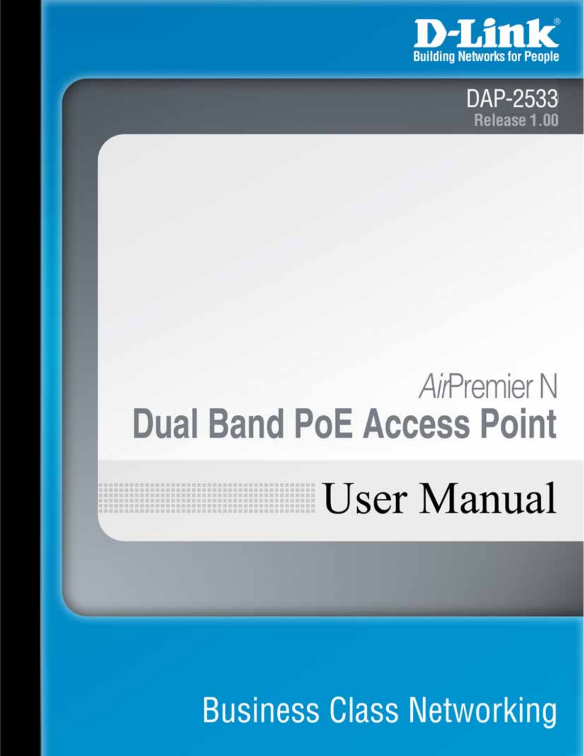 DAP- 2533 User’s Manual Table of Contents Table of Contents Package Contents Introduction Features and Benefits Wireless Basics Four Operational Modes Getting Started Using the Configuration Menu Home > Basic Settings > Wireless > Access Point mode Home > Basic Settings > Wireless > WDS with AP mode Home > Basic Settings > Wireless > WDS mode Home > Basic Settings > Wireless > Wireless Client mode Home > Basic Settings > Wireless > Open System or Shared Key authentication Home > Basic Settings > Wireless >
