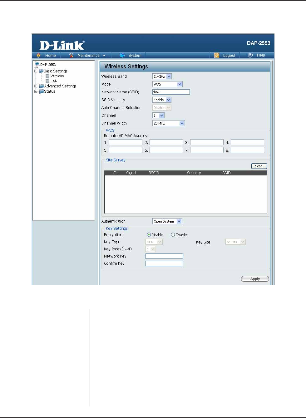 In WDS mode, the DAP-2553 wirelessly connects multiple networks, without functioning as a