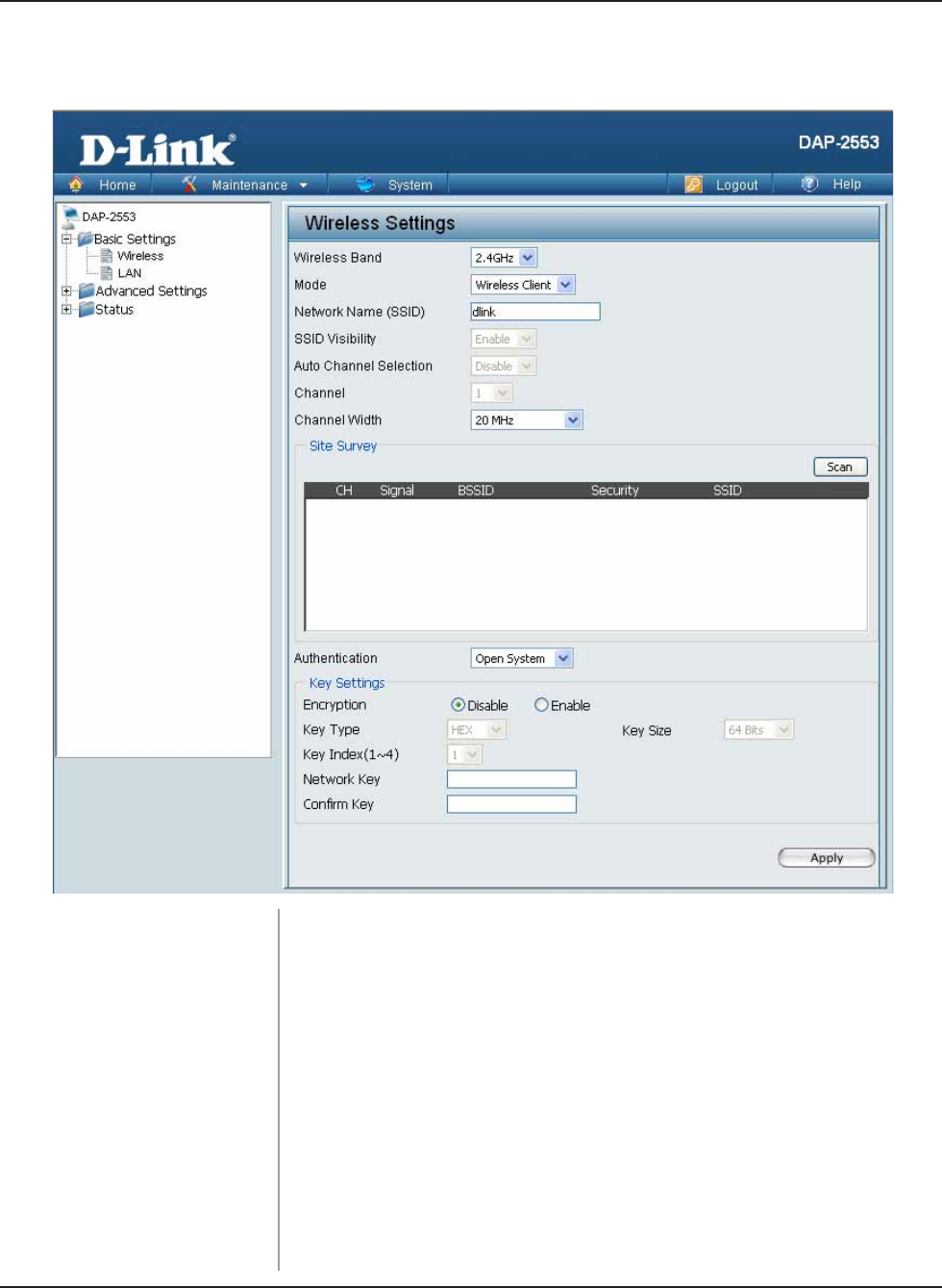 Select either 2.4 GHz or 5 GHz from the pull-down menu.
