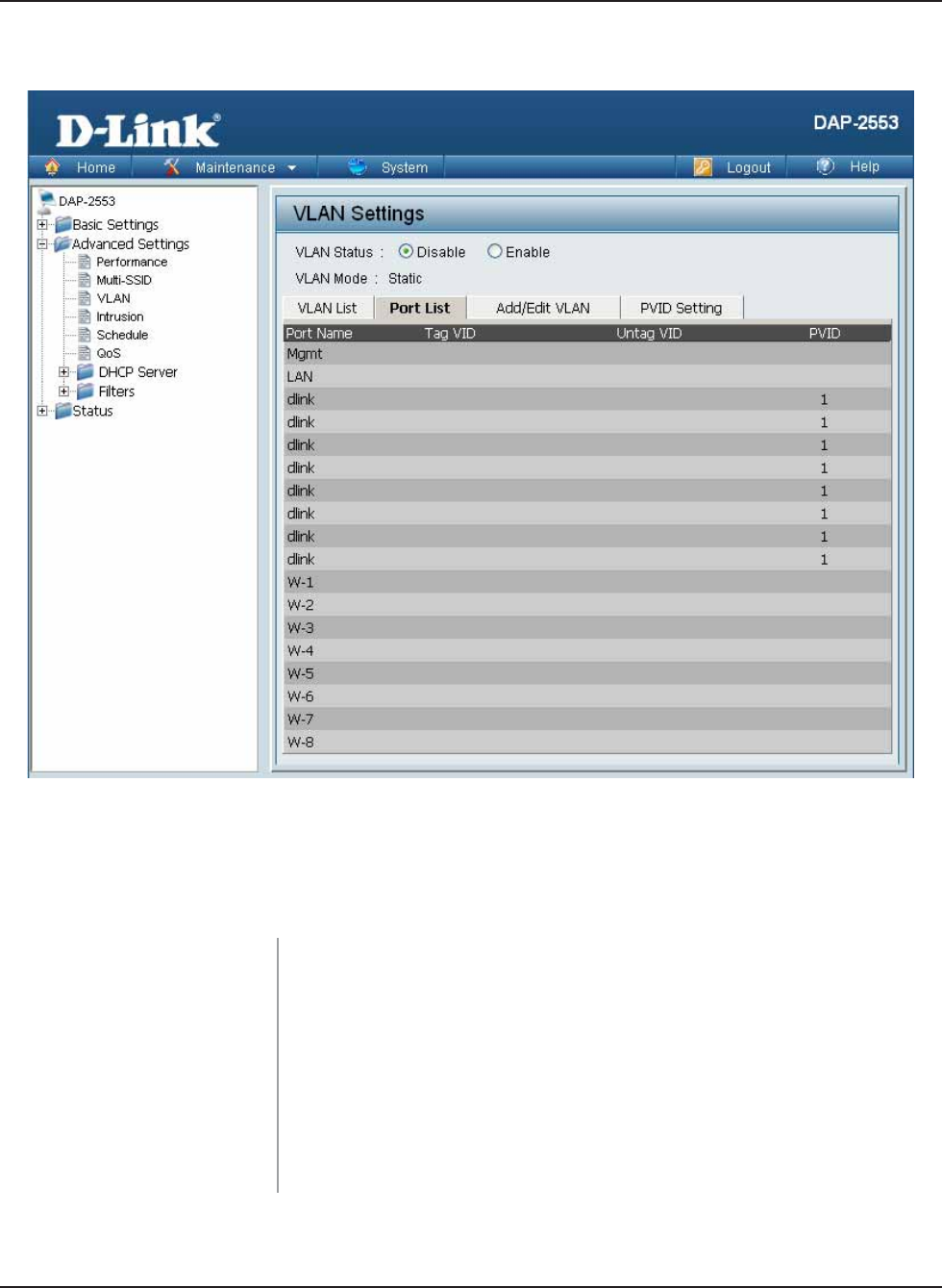 Home > Advanced Settings > VLAN > Port List