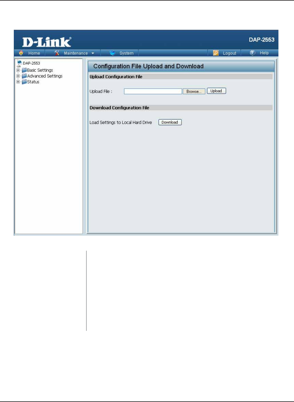 Click Download to save the current DAP-2553 configuration to