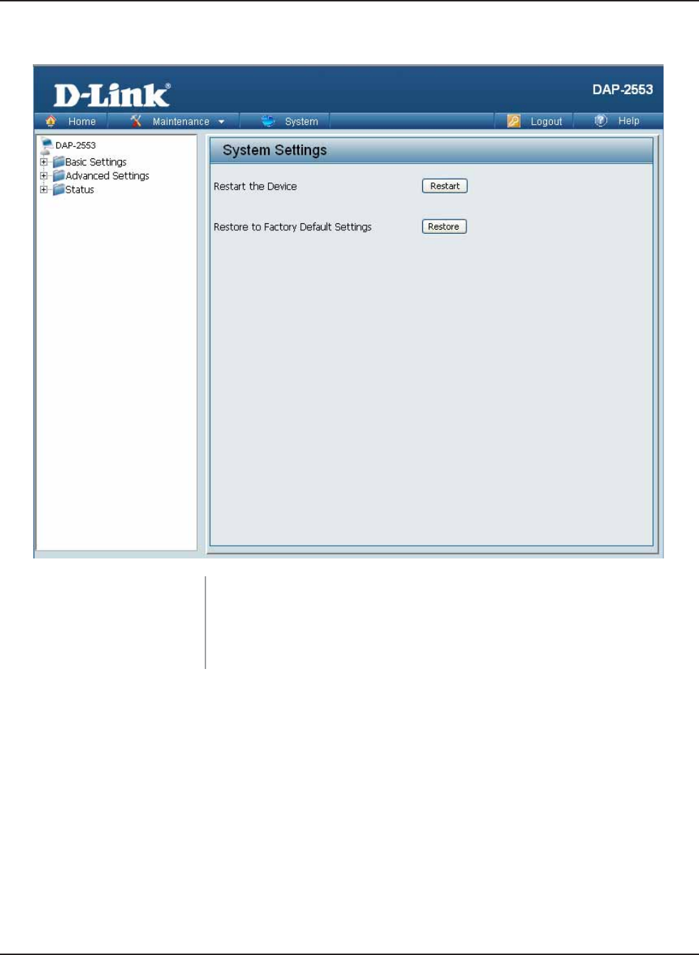 Click Restart to restart the DAP-2553.