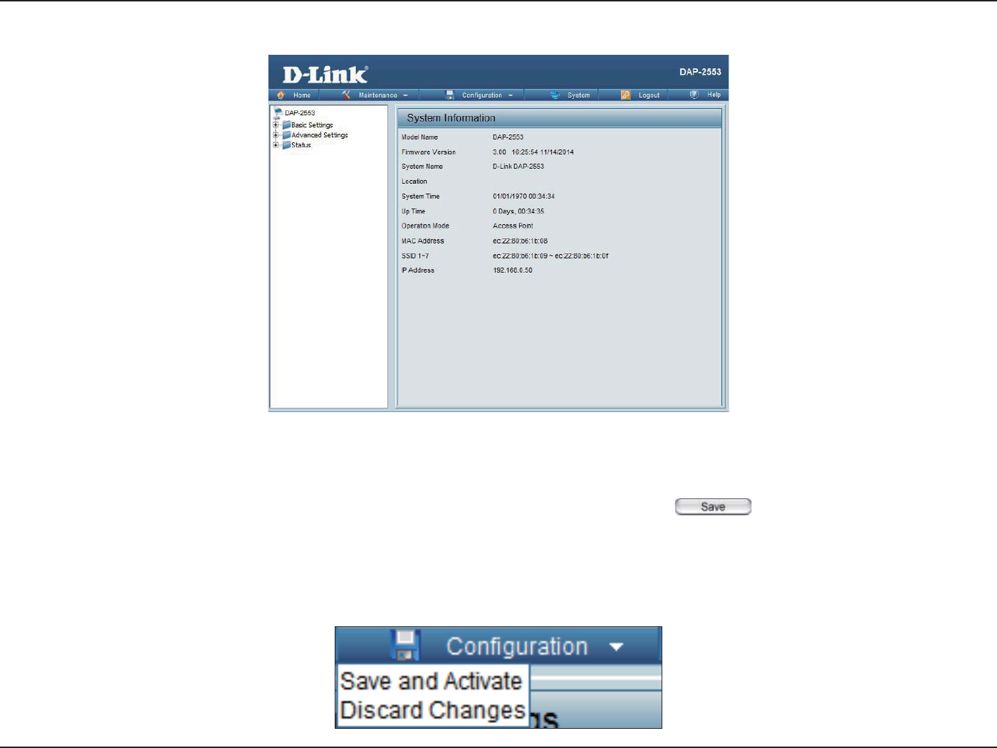 You may change settings to multiple pages before activating. Once you are nished, click the Conguration button located