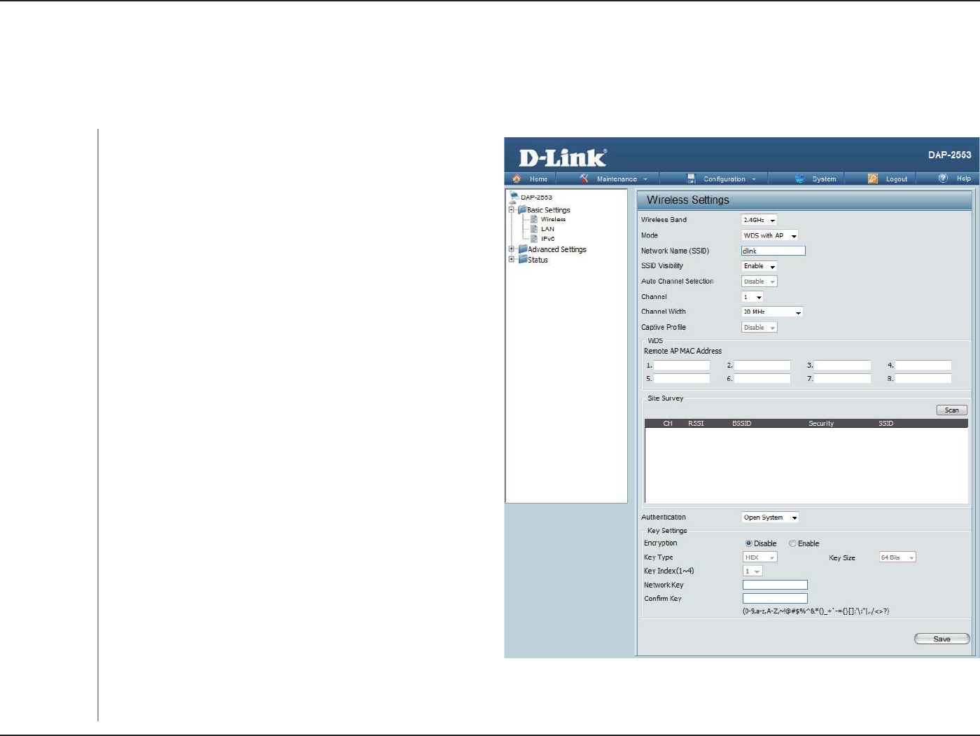 In WDS with AP mode, the DAP-2553 wirelessly connects multiple networks while still functioning as a wireless AP.