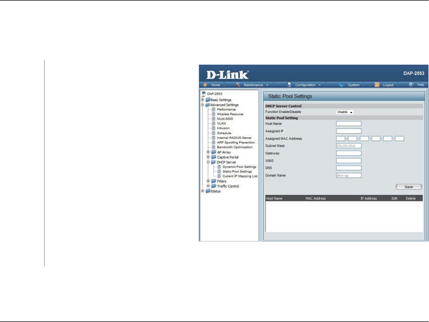 The DHCP address pool denes the range of IP addresses that can be assigned to stations on the network. A static pool allows