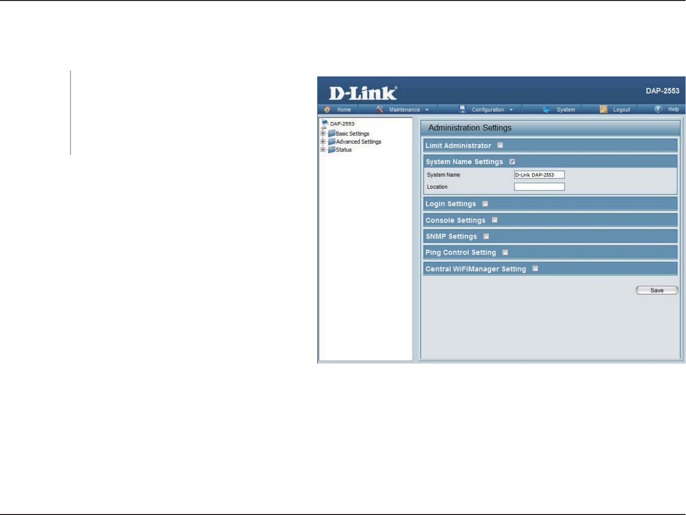 Each of the seven main categories display various hidden administrator parameters and settings.