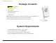 Section 1 - Product Overview Product Overview Package Contents DCS-930L_A2 • DCS-930 Network Camera • CAT5 Ethernet Cable • Power Adapter • Manual and Software on CD • Quick Install Guide • Camera Stand Note: Using a power supply with a different voltage than the one included with your product will cause damage and void the warranty for this product. If any of the above items are missing, please contact your reseller. System Requirements • Computer with Microsoft Windows® 7, XP®, or Vista® • PC with 1.