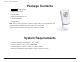 Section 1 - Product Overview Product Overview Package Contents DCS-930_A2 DCS-930L_A2 • DCS-930 Network Camera • CAT5 Ethernet Cable • Power Adapter • Manual and Software on CD • Quick Install Guide • Camera Stand Note: Using a power supply with a different voltage than the one included with your product will cause damage and void the warranty for this product. If any of the above items are missing, please contact your reseller.