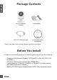 ENGLISH Package Contents DCS-932L Network Camera CAT5 UTP Ethernet Cable Power Adapter CD-ROM with Manual and Software If any of the items are missing, please contact your reseller. Before You Install In order to successfully install your camera, make sure you have the following: • Computer with Microsoft Windows® 8/7/Vista/XP, or Mac with OS X 10.6 or higher • PC with 1.