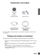 Комплект поставки РУССКИЙ IP-камера DCS-932L Адаптер питания CAT5 UTP Ethernet CableКабель Ethernet категории 5 UTP CD-диск с Руководством пользователя и программным обеспечением. Если что-либо из перечисленного отсутствует, пожалуйста, обратитесь к поставщику. Перед началом установки Для успешной установки камеры убедитесь в наличии следующего: • Компьютер с ОС Microsoft Windows® 8/7/Vista/XP или Mac с OS X 10.