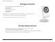 Section 1 - Product Overview Product PackageOverview Contents • • • • • • DCS-933L Wireless N H.264 Day/Night Network Camera CAT5 Ethernet Cable Power Adapter Manual and Software on CD Quick Install Guide Mounting Kit Note: Using a power supply with a different voltage than the one included with your product will cause damage and void the warranty for this product. If any of the above items are missing, please contact your reseller.