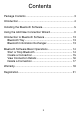 Contents Package Contents ................................................................ 3 Introduction ........................................................................... 4 Installing the Bluetooth Software .......................................... 5 Using the Add New Connection Wizard................................ 9 Introduction to Bluetooth Software ..................................... 13 Bluetooth Tray ................................................................