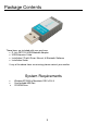 Package Contents These items are included with your purchase: • D-Link DBT-120 USB Bluetooth Adapter • USB Extension Cable • Installation CD with Driver, Manual, & Bluetooth Software • Installation Guide If any of the above items are missing, please contact your reseller. System Requirements • • • Windows XP/2000 or Macintosh OS X v10.4.