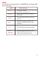 LEDS LED stands for Light-Emitting Diode. The DI-707P has the following LEDs as described below: LED LED Activity Power A steady light indicates a connection to a power sourcea power source M1 LED Flashes once per second to indicate an active system M2 LED Lights up when the device has an Internet connection WAN A solid light indicates connection on the WAN port.