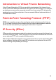 Introduction to Virtual Private Networking Virtual Private Networking (VPN) uses a publicly wired network (the Internet) to securely connect two different networks as if they were the same network. For example, an employee can access the corporate network from home using VPN, allowing the employee to access files and printers. Here are several different implementations of VPN that can be used.