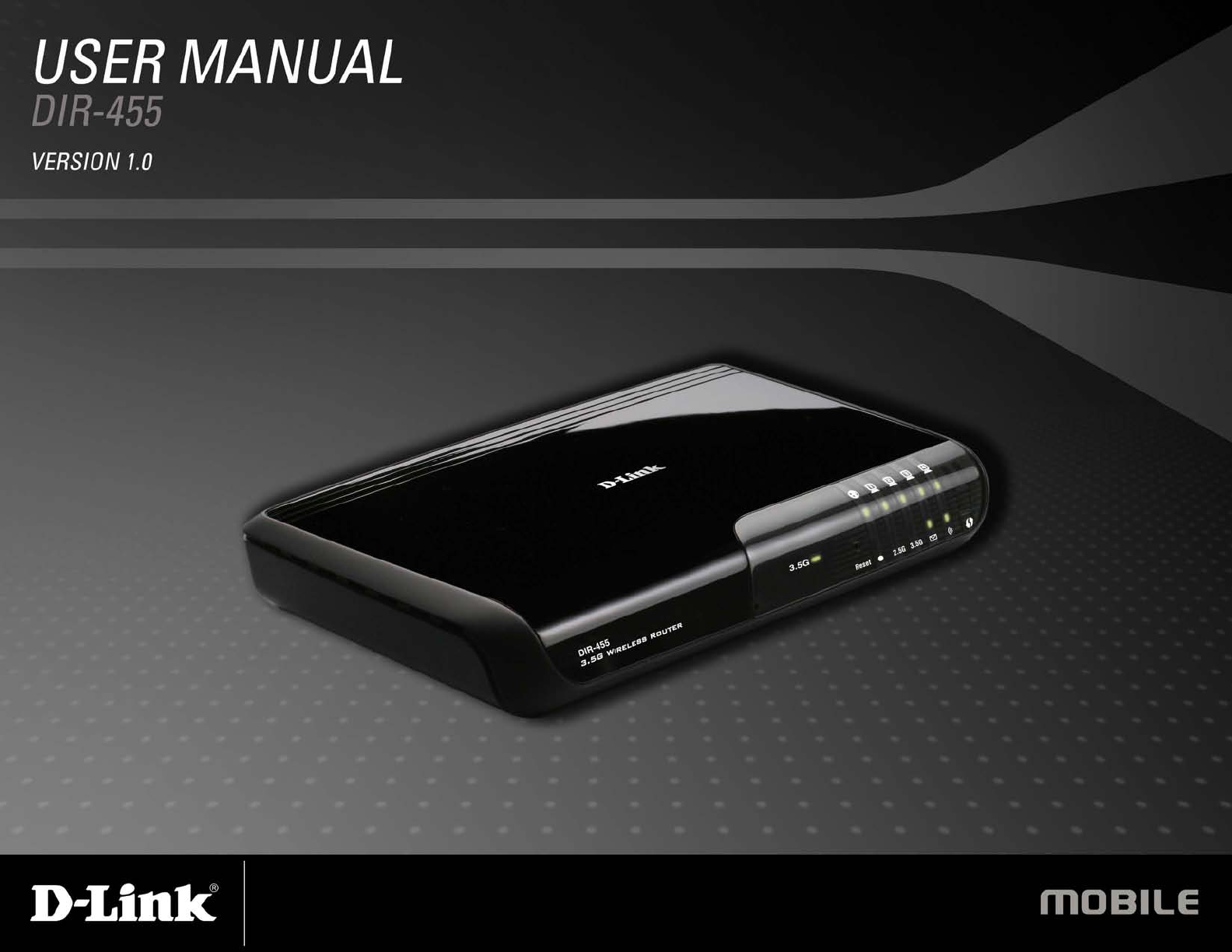 Section 1 - Product Overview Product PackageOverview Contents • D-Link DIR-455 Mobile Router • Power Adapter • Ethernet Cable • RJ-11 Telephone Cable • Manual and Warranty on CD Note: Using a power supply with a different voltage rating than the one included with the DIR-455 will cause damage and void the warranty for this product. System Requirements • A compatible (U)SIM card with service.
