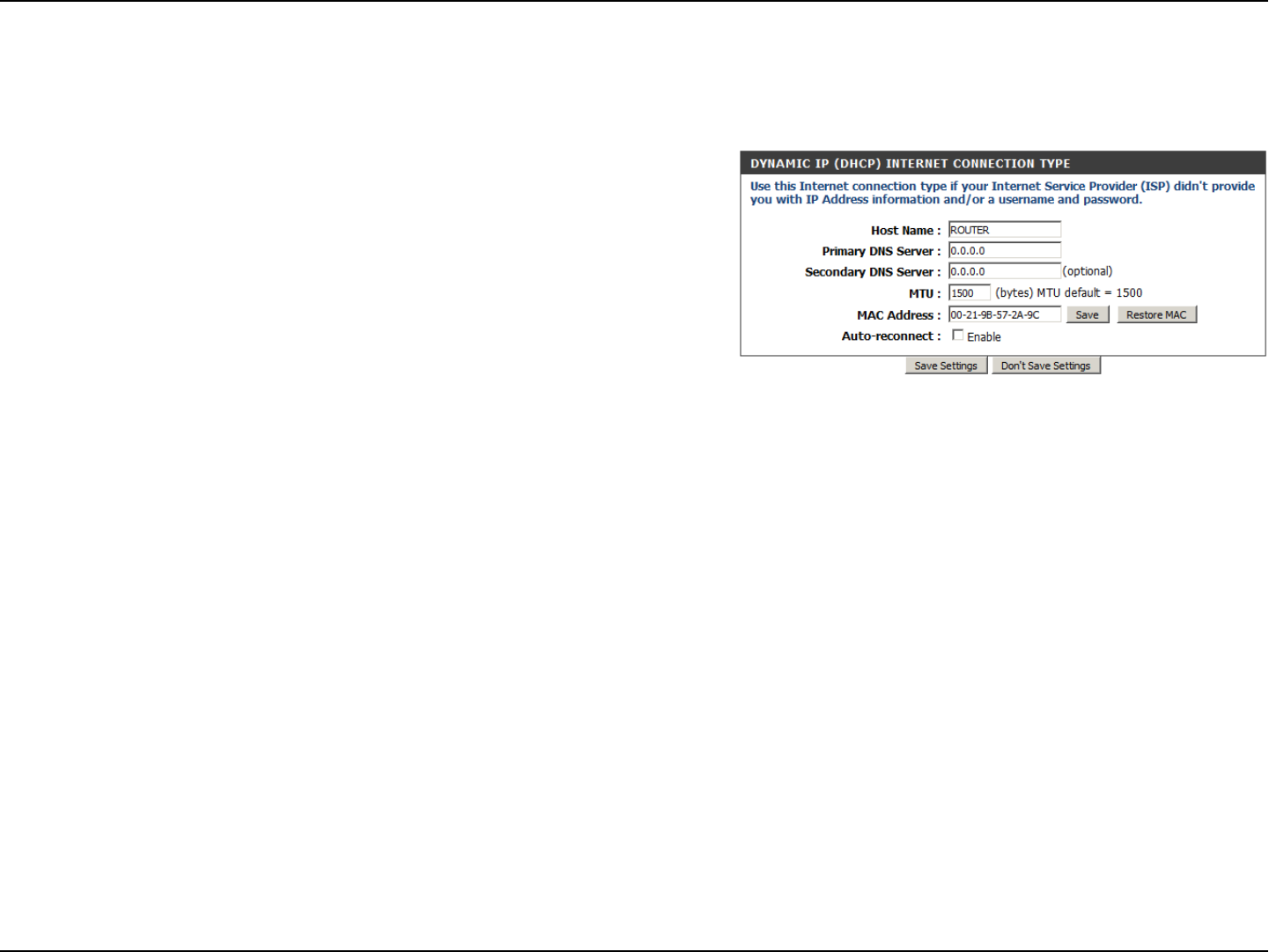 The default MAC Address is set to the Internet port’s physical interface MAC address on the Broadband Router.