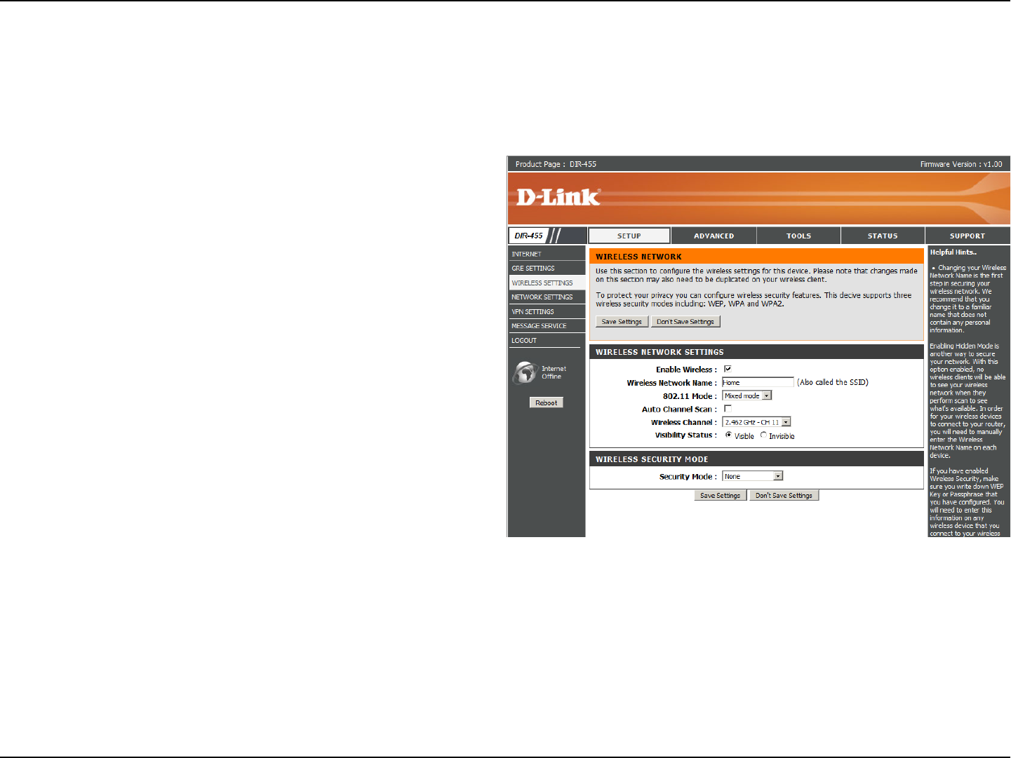 This section will help you to manually congure the wireless settings of your router. Please note that changes made on this section may