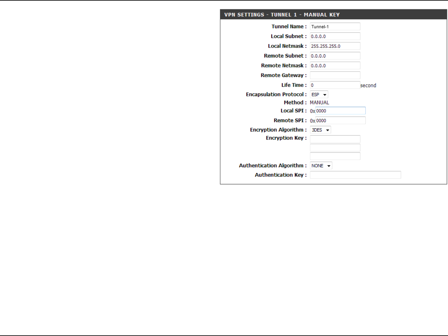 is MD5 or 20 bytes if SHA1. Its length will be 0 if no authentication algorithm is chosen. The key value should