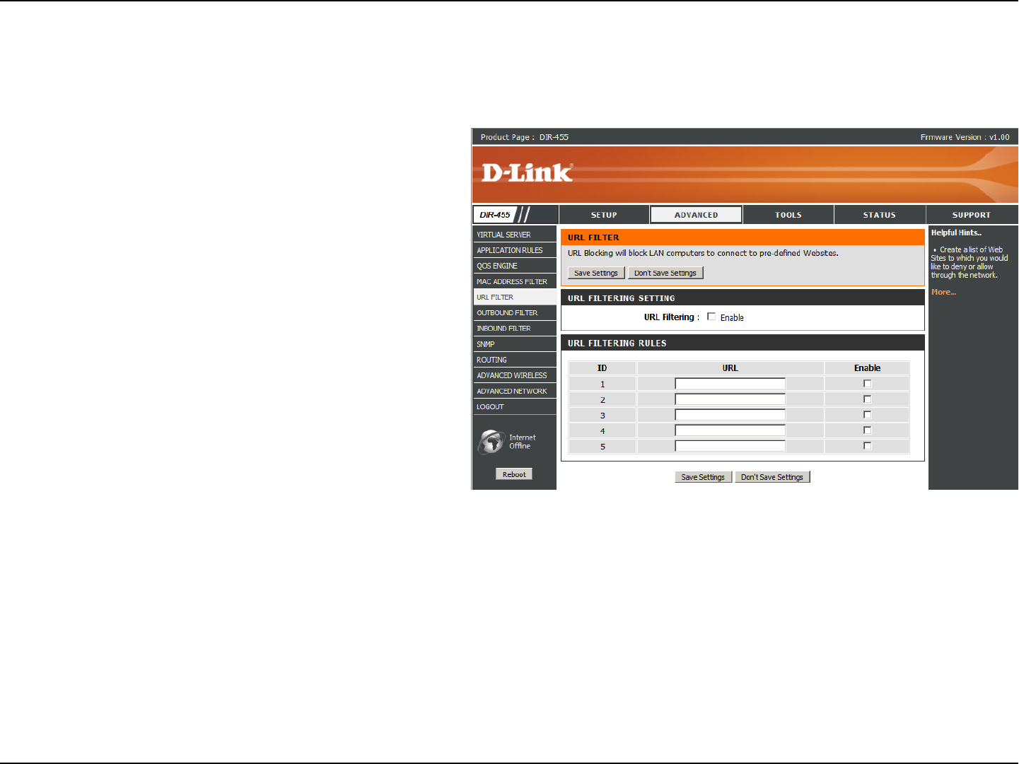 URL Filter allows you to set up a list of Web-sites that will be blocked from users on your network.
