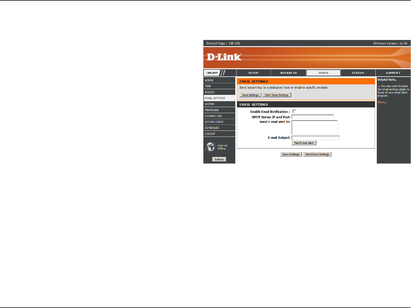 E-mail Settings allows you to send the system log les, router alert messages, and rmware update notications to an e-mail address.