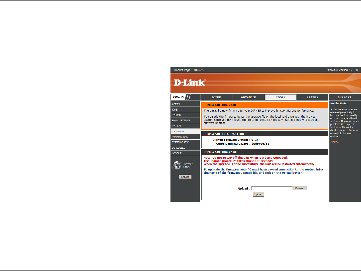 and then click Browse to upload the le. Please check the D-Link support site for rmware updates at http://support.dlink.com. You can