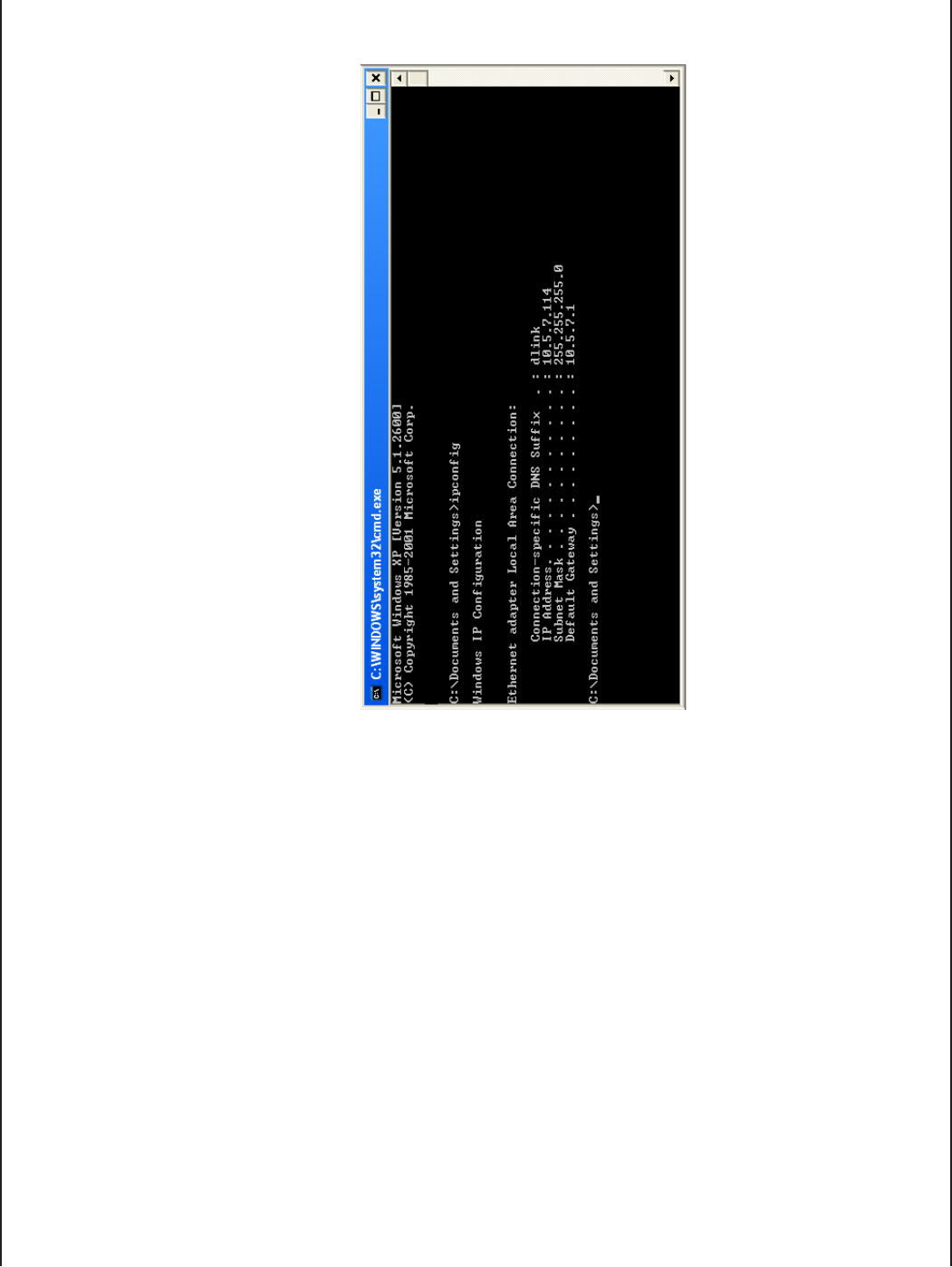 At the prompt, type ipconfig and press Enter.