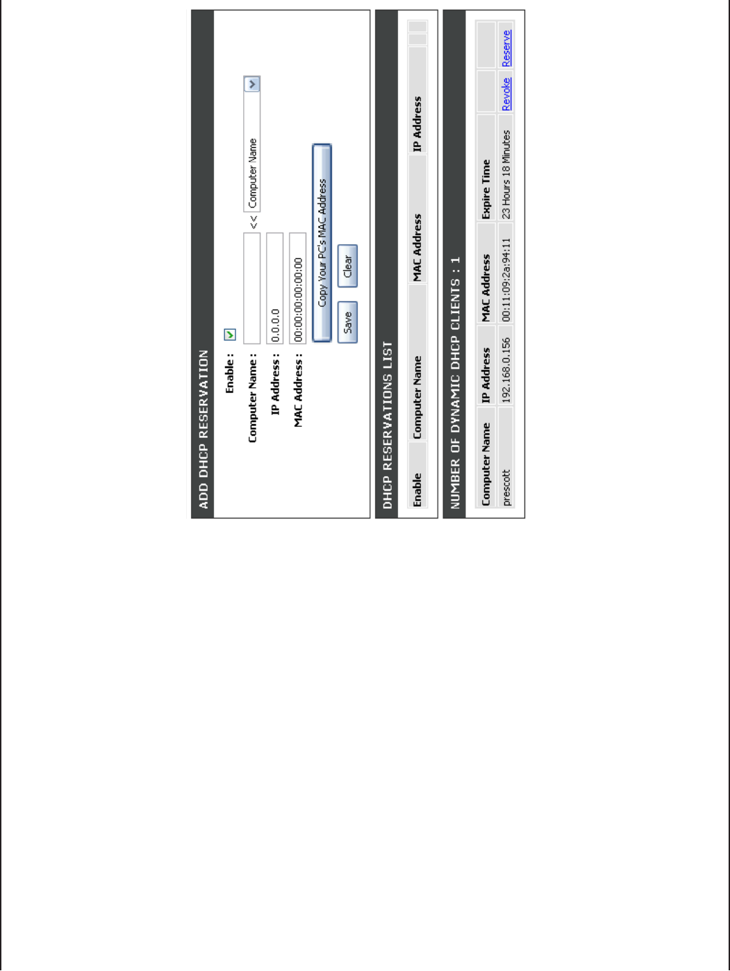 In this section you can see what LAN devices are currently leasing IP addresses.