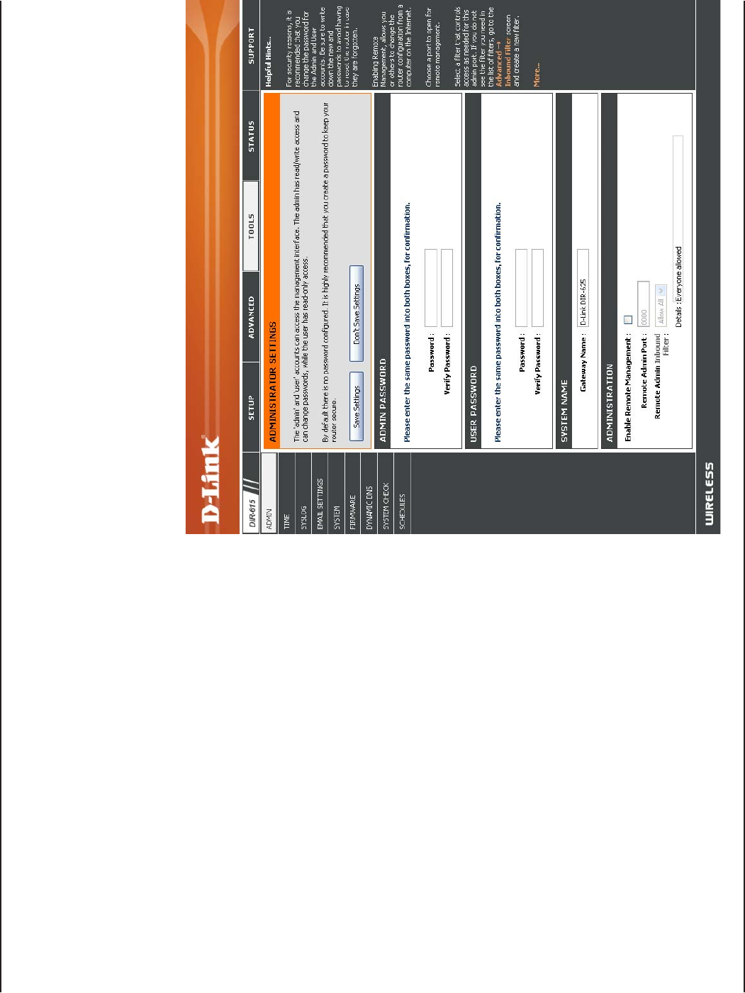 This page will allow you to change the Administrator and User passwords. You can also enable Remote Management.