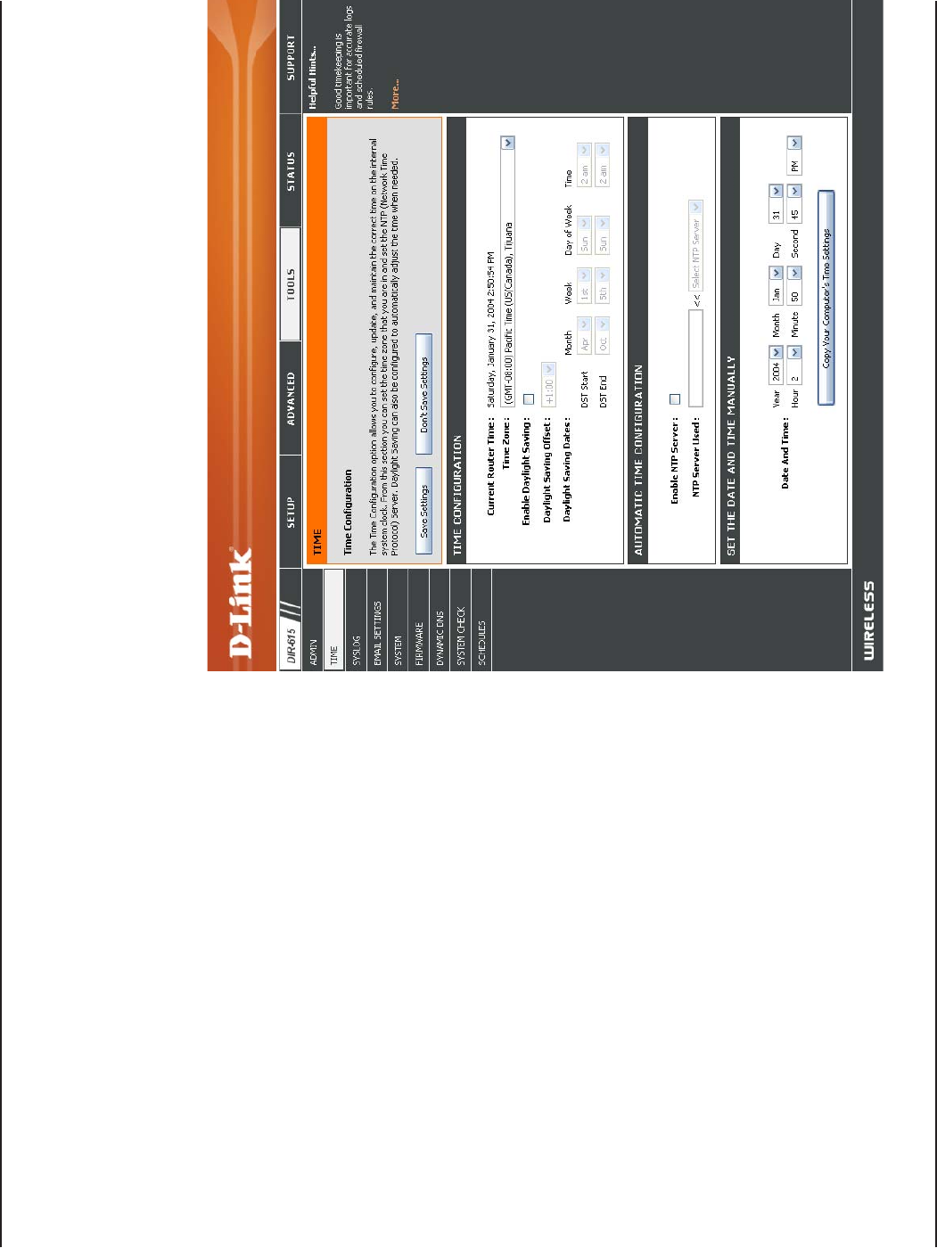 clock. From this section you can set the time zone that you are in and set the Time Server. Daylight Saving can also