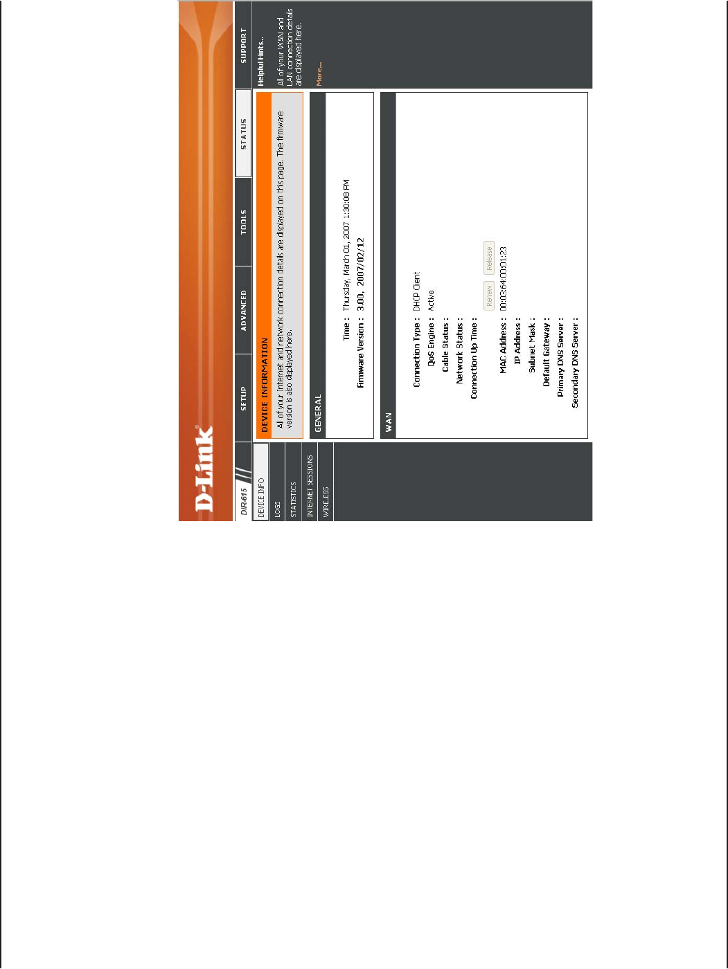 This page displays the current information for the DIR-615. It will display the LAN, WAN (Internet), and Wireless