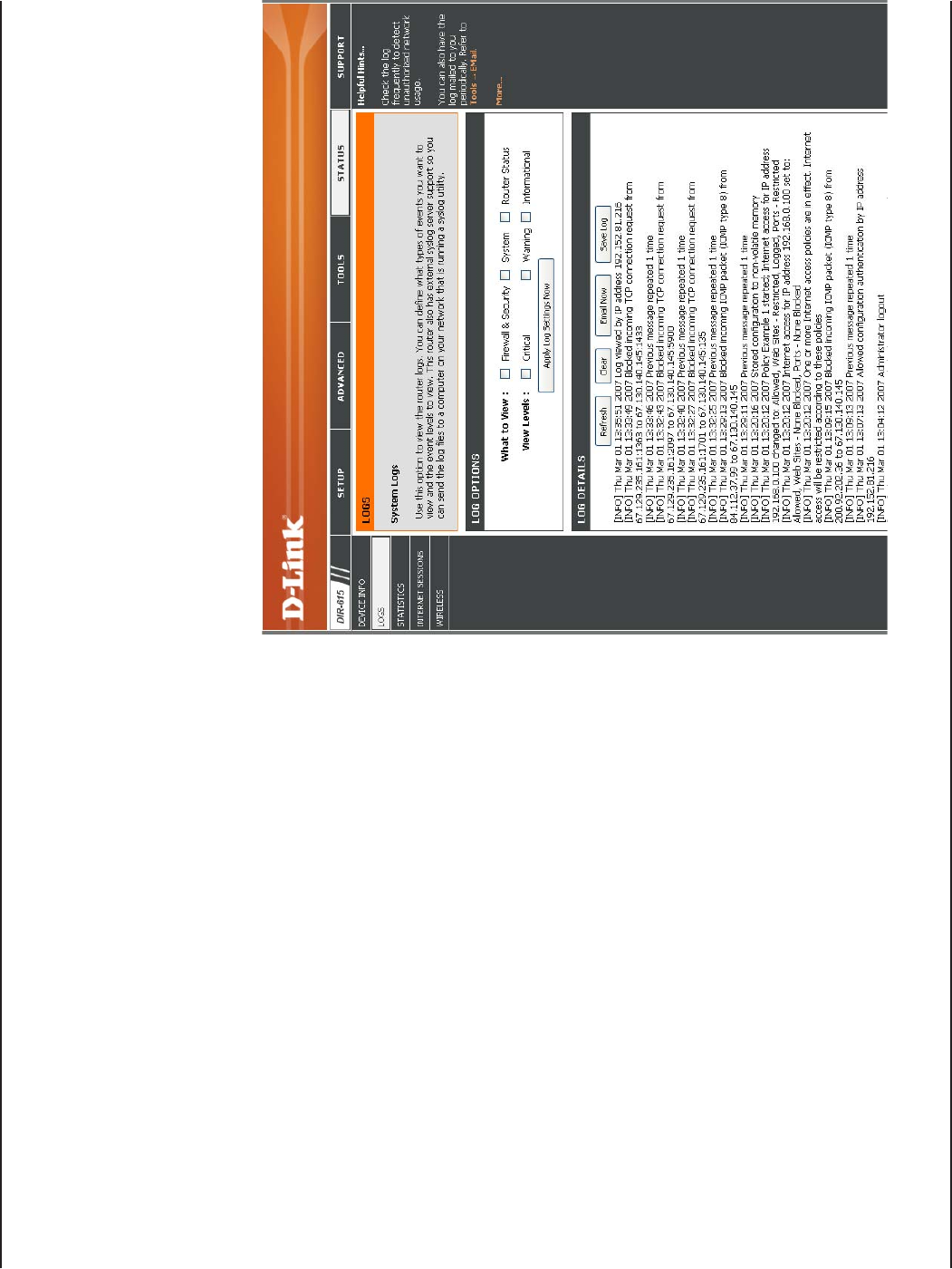 you to view the router logs. You can define what types of events you want to view and the level of the events to view.
