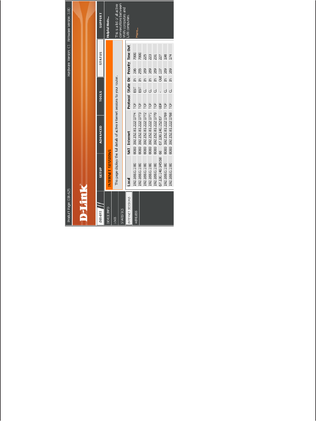 The Internet Sessions page displays full details of active Internet sessions through your router. An Internet session is a