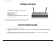 Section 1 - Product Overview Product PackageOverview Contents • D-Link DIR-625 RangeBooster N™ Router • 2 Detachable Antennas • Power Adapter • CAT5 Ethernet Cable • CD-ROM with Installation Wizard, User Manual, and Special Offers Note: Using a power supply with a different voltage rating than the one included with the DIR-625 will cause damage and void the warranty for this product.
