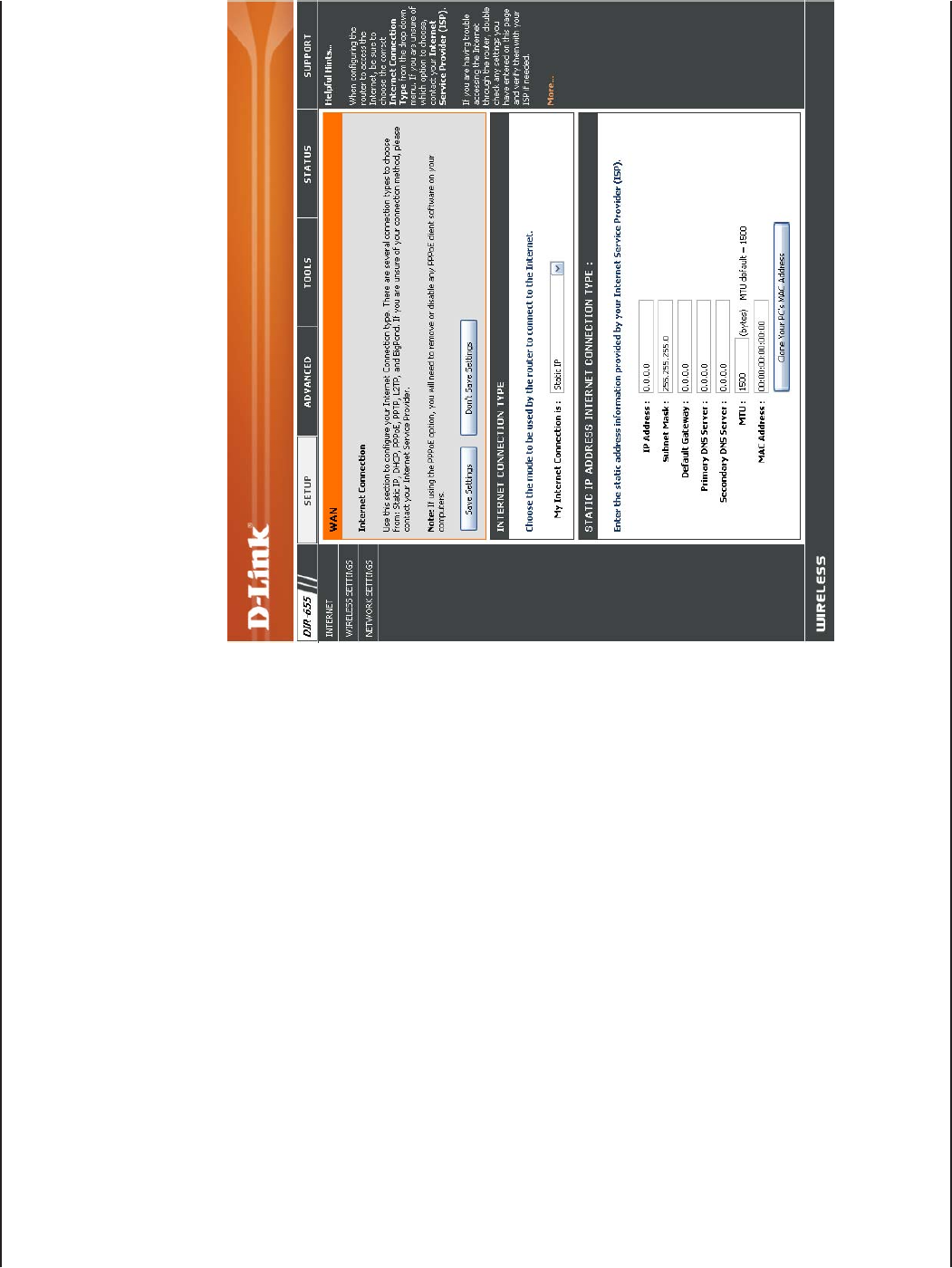 Select Static IP Address if all the Internet port’s IP information is provided to you by your ISP. You will need to enter in the IP address,