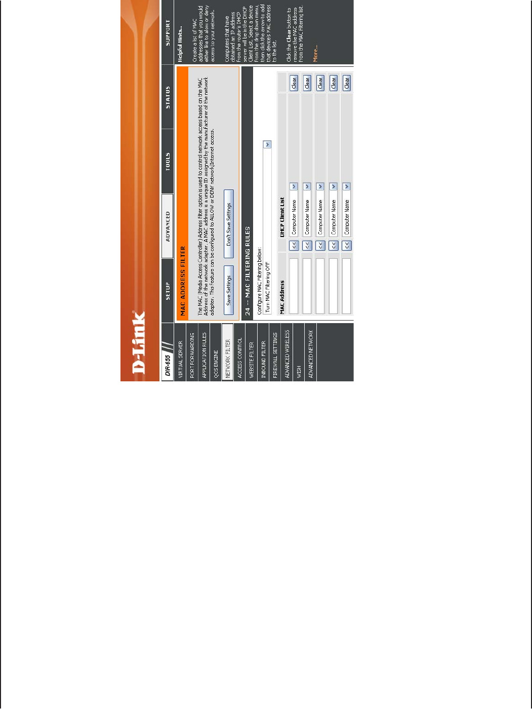 Use MAC (Media Access Control) Filters to allow or deny LAN (Local Area Network) computers by their MAC addresses